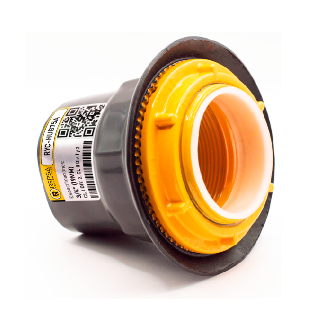 Conector para tablero HUB con recubrimiento exterior de PVC e interior de uretano Amarillo.